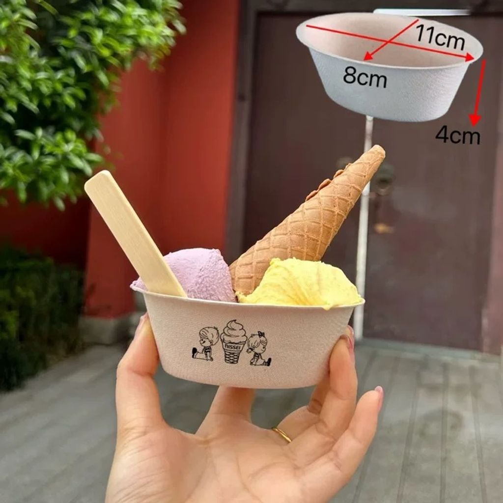 Custom Eco-Friendly Logo Ice Cream Cup, Food Safe, Legal Wood Source. Low MOQ (As low as $0.23/pc)