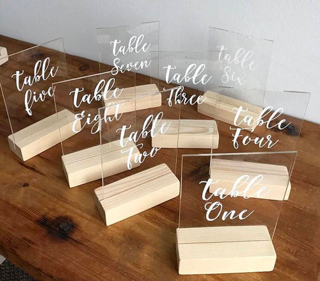 This is a custom, hand-made Perspex table numbers with wooden base for indoor or outdoor. Also suitable for engagement parties, rehearsal dinners, etc. No signs are ever alike. Made of high gloss acrylic. Everything is personalized, we can match them to your cafe / wedding colors or invites. We will work with you to make this completely customized to your needs!